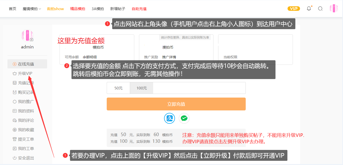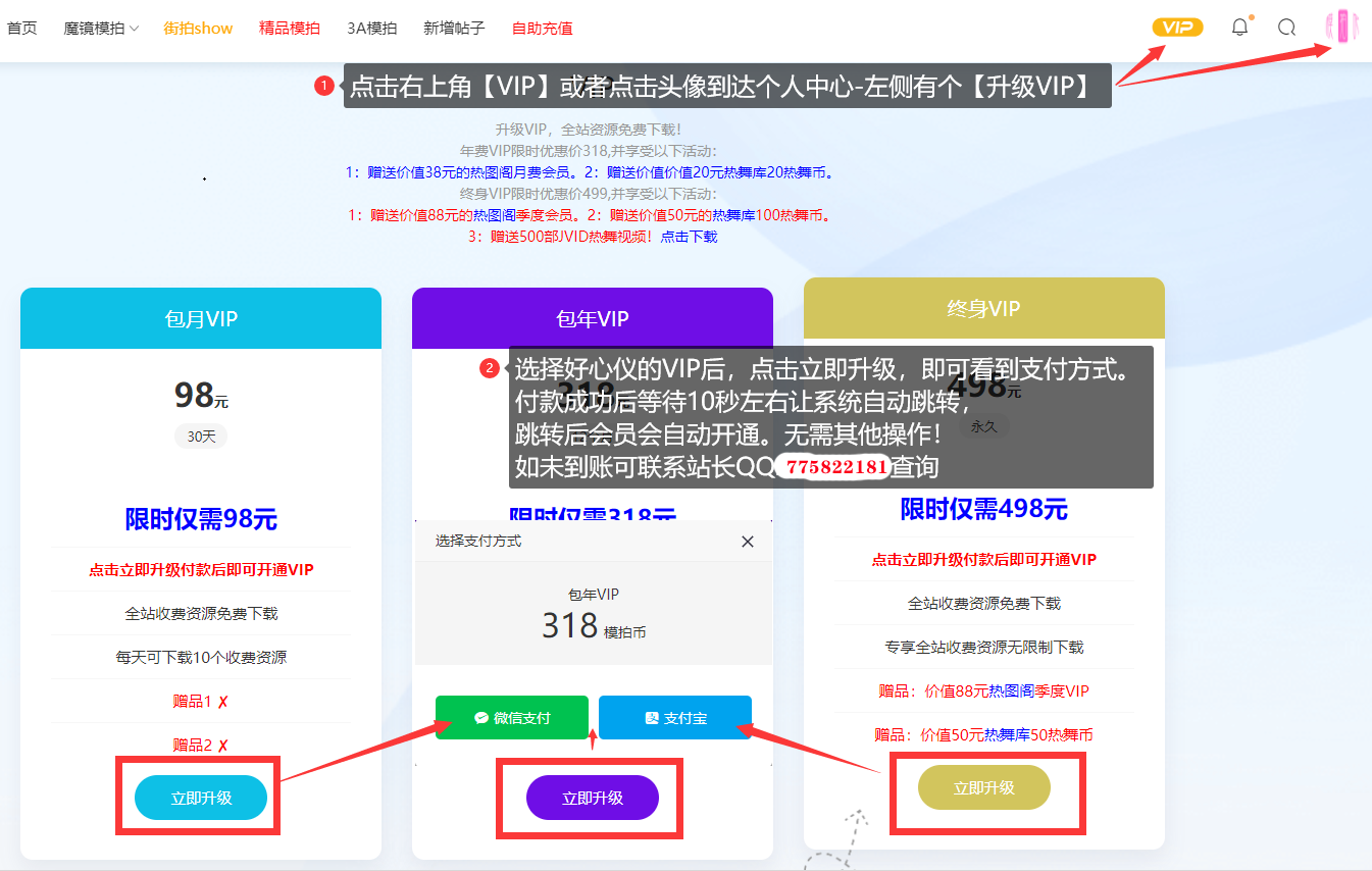 VIP充值方式:(手机端用微信支付的,可拉到最下方查看教程)